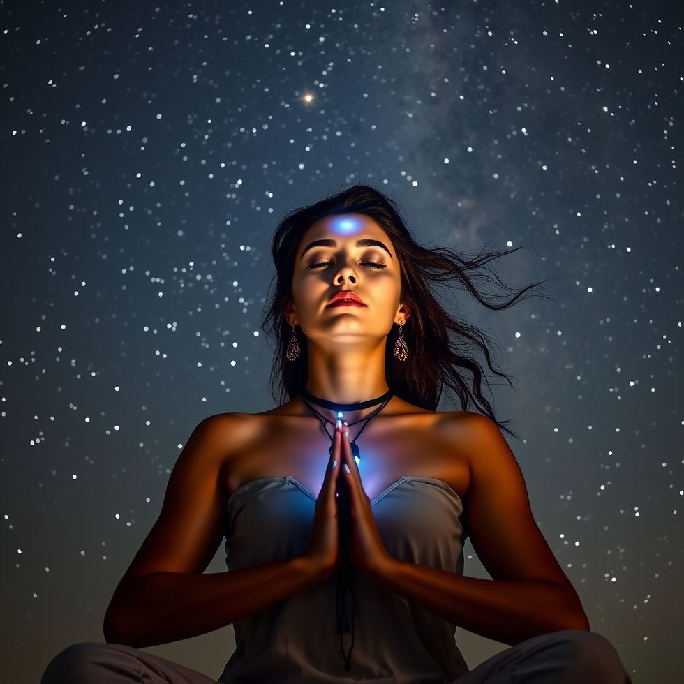 The third eye, also known as the sixth chakra or Ajna in Sanskrit, is located in the center of the forehead, just above and between the eyebrows. It is not a physical eye but a subtle energy center connected to intuition, insight, and spiritual awareness. When open and balanced, the third eye allows you to perceive information beyond the five senses, often through images, symbols, or flashes of knowing.
